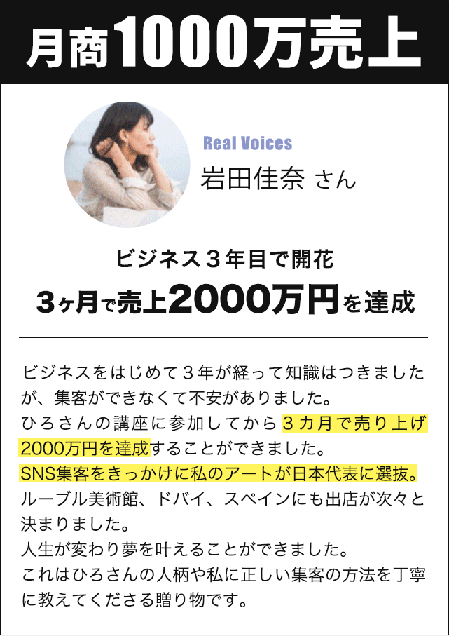 さらに、自分の好きなことや得意な事に共感してくれる人を集めるSNS集客という手法。価値観の合う仲間が集まるので楽しく実践を続けられます。